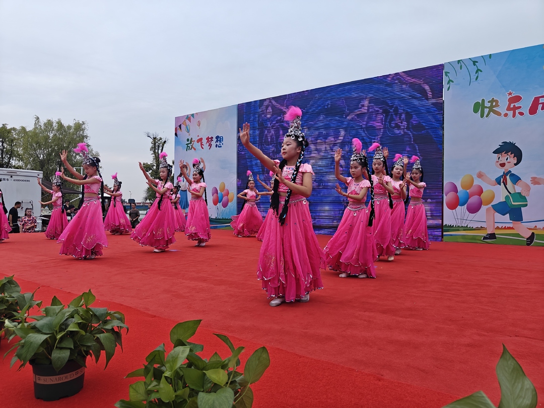 前往活动的路上,是孩子们的美术作品展,是孩子们用画笔为西洞庭的代言。活动现场,在孩子们身着节日盛装,以饱满的热情和精湛的技艺,为观众呈现了一场精彩纷呈的文艺盛宴。架子鼓《鼓韵童心》、新疆舞《Rake Rake Dum》、舞蹈《望》、非洲鼓《旗开得胜》、现代舞《把未来点亮》等各种精彩绝伦的表演,展示孩子青春的活力、才艺和创造力。