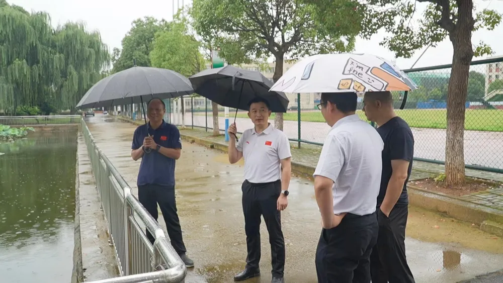 郑涵文一行仔细查看了学校的排水系统、防汛设施及应急预案准备情况,并与学校负责人深入交流,详细了解学校防汛工作的具体措施,并就存在的相关问题提出了针对性改进建议。