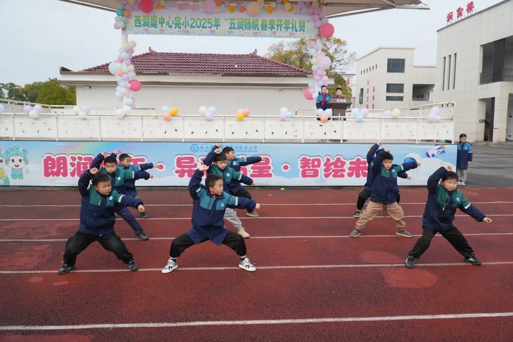 2月18日,西洞庭中心完小举行2025年“五润扬帆 春季开学礼赞”活动。伴随着雄壮的国歌声,鲜艳的五星红旗冉冉升起,全校师生肃立,向国旗行注目礼,表达了对祖国的无限热爱和崇高敬意。
