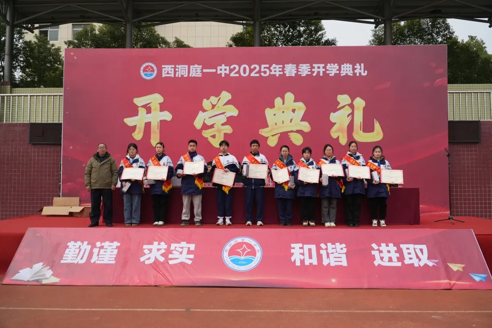 2月24日,西洞庭一中2025年春季开学典礼在学校操场举行。全体师生在国旗下迎接新学期的到来。