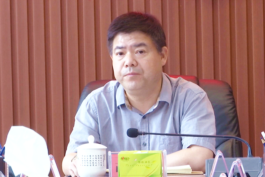 实地调研后,胡晓明在区办公楼四楼会议室召开会议。