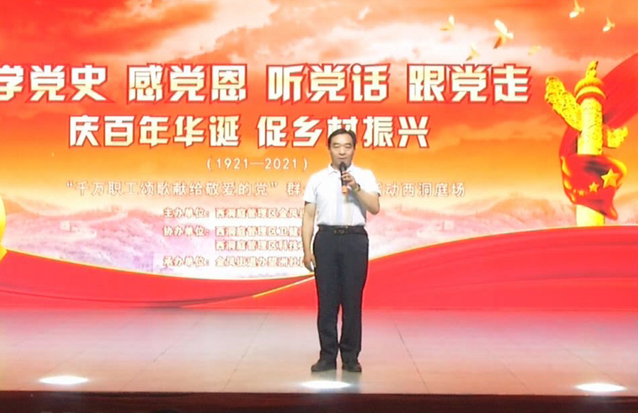 今年是中国共产党成立100周年,金凤街道在望洲社区百姓大舞台举行了庆祝建党100周年文艺汇演。区党委委员、工会主任刘建强到场观看并宣布文艺汇演开始。
