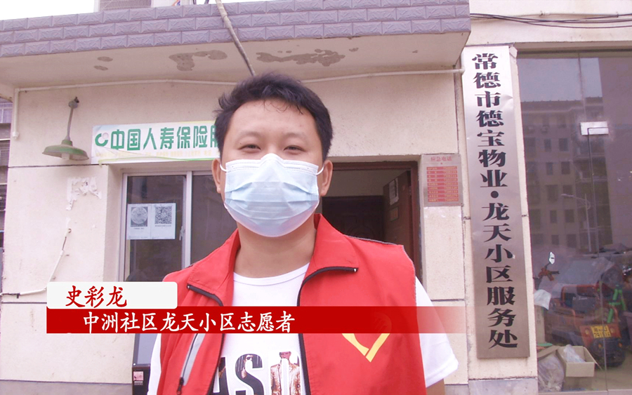 ​中洲社区龙天小区志愿者 史彩龙:近期,疫情防控形势很紧张,社区需要很多人手,我听到这个消息之后,就来到社区申报成为志愿者。(我认为)疫情防控、人人有责,需要大家一起共同努力。