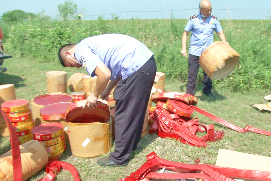 为打击非法销售烟花爆竹行为,优化文明祭祀物品交易市场环境,确保中元节期间安全形势平稳。8月20日,祝丰镇联合区公安分局、市场监管局、综合行政执法局、应急管理局,在全镇开展烟花爆竹打非治违专项整治行动,查处无证非法买卖烟花爆竹违法行为,确保辖区内安全环境良好。