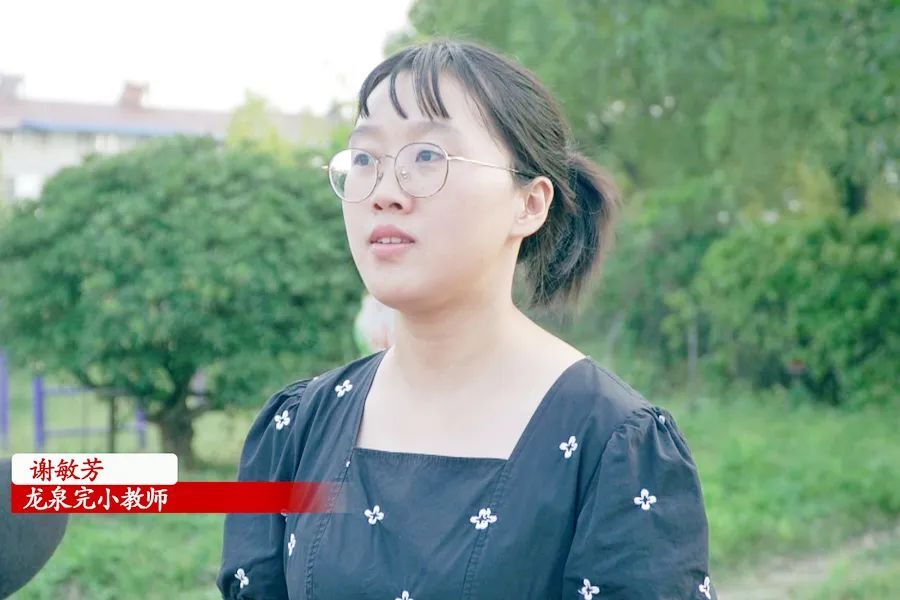 (龙泉完小老师 谢敏芳:学校新配置了图书馆等设施,我们会鼓励学生去阅读,老师就是学生的一面镜子,为了提高师生的书写能力,我们教研组还开展了师生写字竞赛活动,期末时还会对青年教师的手抄教案进行评比。)
