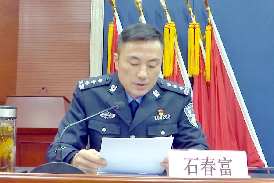 区公安分局党组副书记、政委石春富宣读全区扫黑除恶先进表彰文件