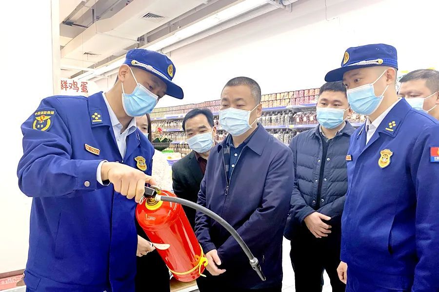 刘爱军一行先后来到祝丰汽车站、步步高超市和中化石油加油站,就安全生产、消防安全和疫情防控等方面工作落实情况进行实地检查。