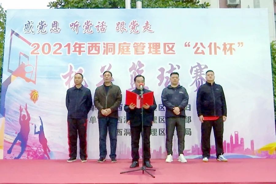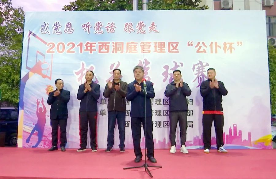 区党委副书记、管委会主任胡晓明宣布比赛正式开始。本届机关篮球赛由西洞庭管理区工青妇主办,组宣部、教育局协办,比赛从11月17号—11月30日结束,共有来自全区各单位组成的10支代表队参加,届时将评选出篮球比赛前三名及“道德风尚奖”。