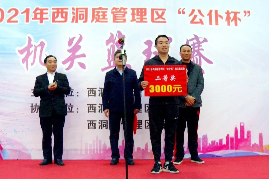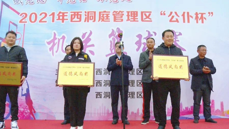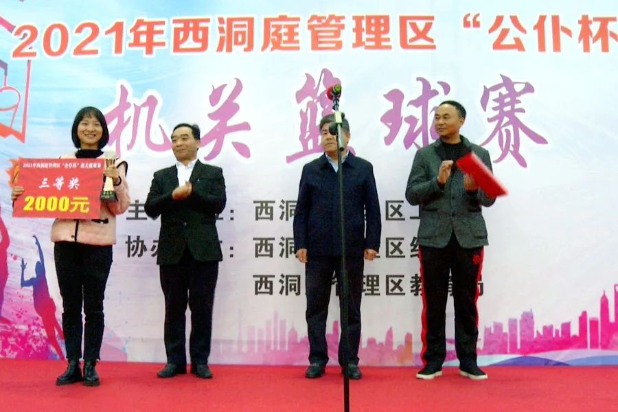 11月25日下午,西洞庭管理区“公仆杯”机关篮球赛闭幕式在明珠广场举行。区党委副书记、管委会主任胡晓明,区党委委员、管委会副主任郭蕾,区党委委员、管委会副主任郑涵文,区三级调研员刘建强出席闭幕仪式,并为获奖单位颁发奖牌。