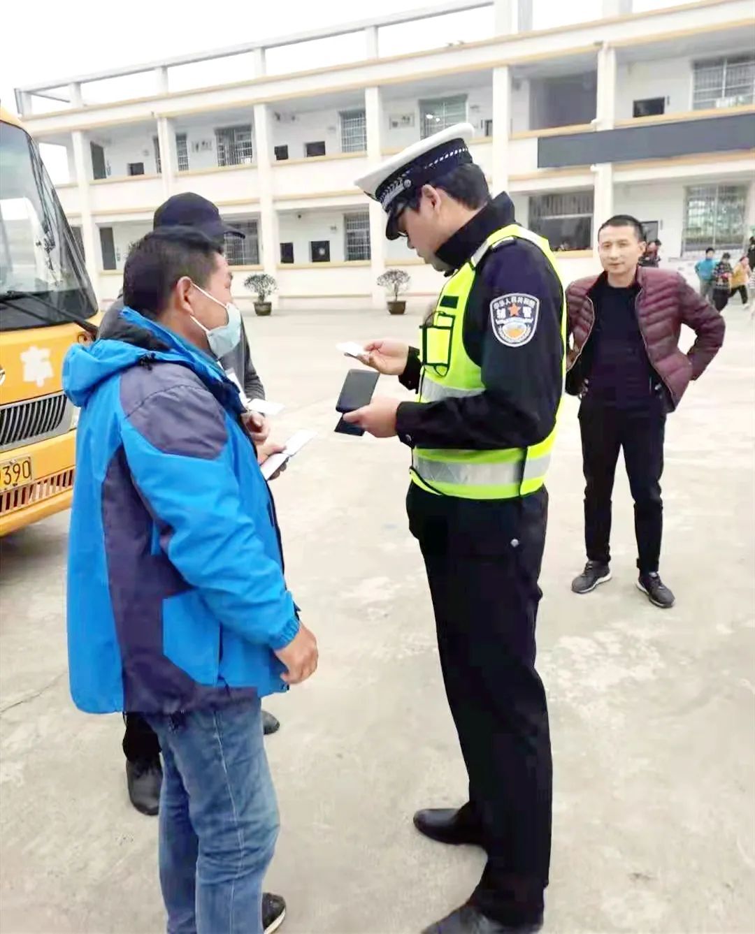 检查中,执法人员仔细检查了校车标识、安全锤、灭火器、车轮纹路等;详细核对了校车座位数量、核载人数、通行路线、驾驶人校车驾驶资格和安全驾驶资历,并要求学校负责人加强校车自管和交通安全培训,要求校车驾驶人做到警钟长鸣、将安全牢记于心,切实提高文明交通安全意识,筑牢校车安全防线,助力师生安全出行。