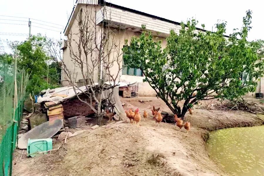 谢顺海是天福社区的一户脱贫户,家中共有七口人,自天福社区开展人居环境整治以来,他积极响应社区号召,对自家的庭院环境进行整治改造,带领自己的妻子和女儿将以前随处堆放在房前屋后的旧砖瓦清理出来,并就地取材,利用旧砖瓦,给后院鱼塘修建了围墙,新建了鸡舍。