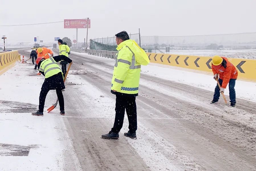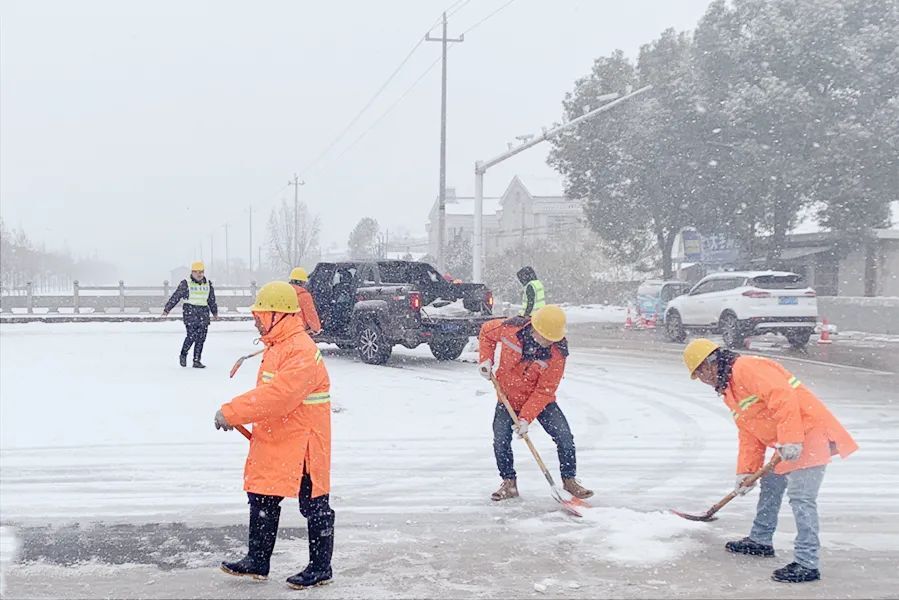 区乡公路管理处组织工作人员在重点路段、桥梁、陡坡等地进行巡查,并开展融雪除冰除障工作。