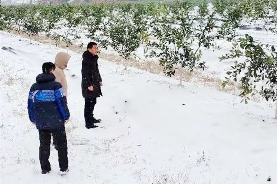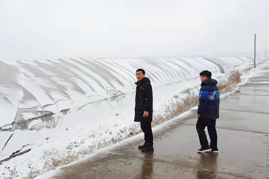 祝丰镇组织村干部实地查看蔬菜大棚受降雪影响情况。
