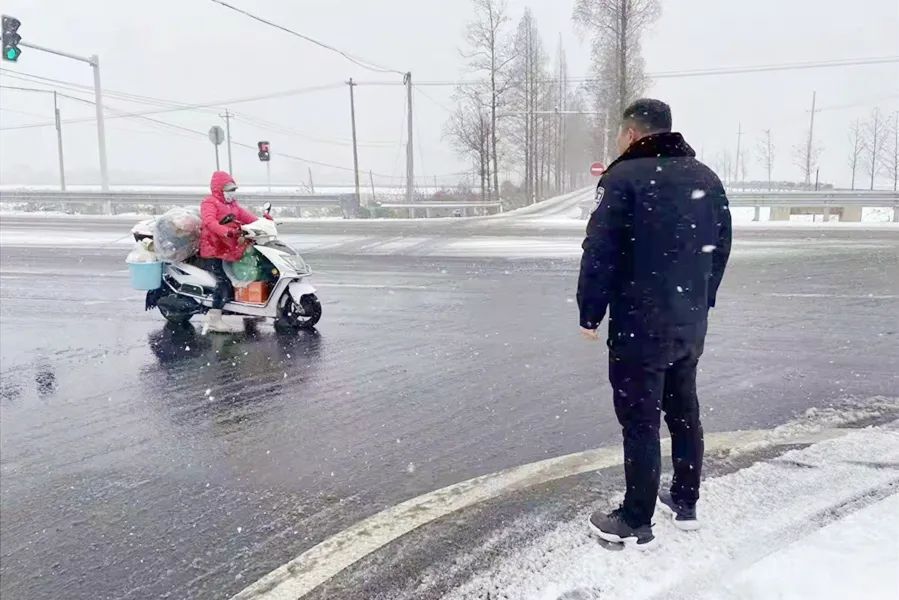 为积极应对低温冰冻雨雪天气,保障道路安全、畅通、有序。区交警大队迅速启动恶劣天气应急预案,实行24小时巡逻管控,从25日晚9点开始,区交警大队分为事故组、巡逻组,在我区重点道路、桥梁、弯道、陡坡等地进行巡查,并设置警示标牌,提醒过往车辆,小心慢行,同时协调相关部门对各路段进行融冰除雪,有效消除道路交通安全隐患。