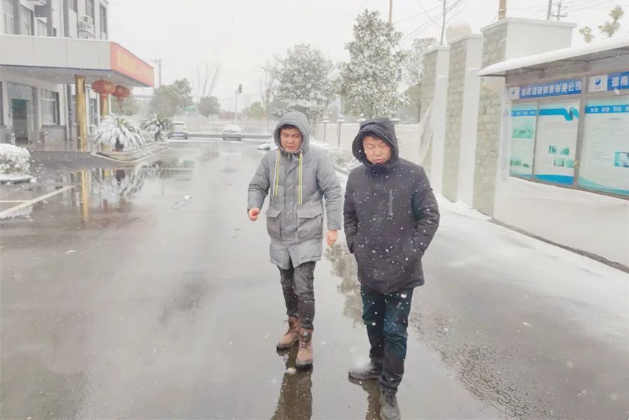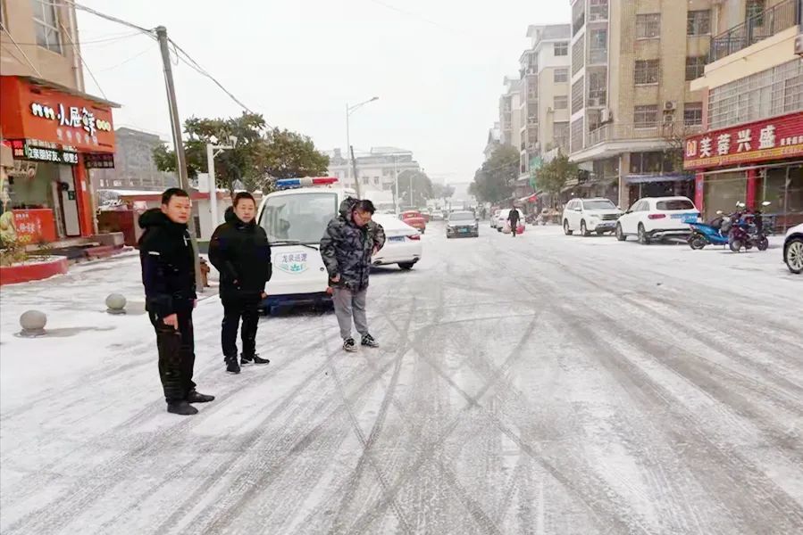 龙泉街道组织工作人员对重点路段开展巡查并扫雪除冰,检查重点场所安全。
