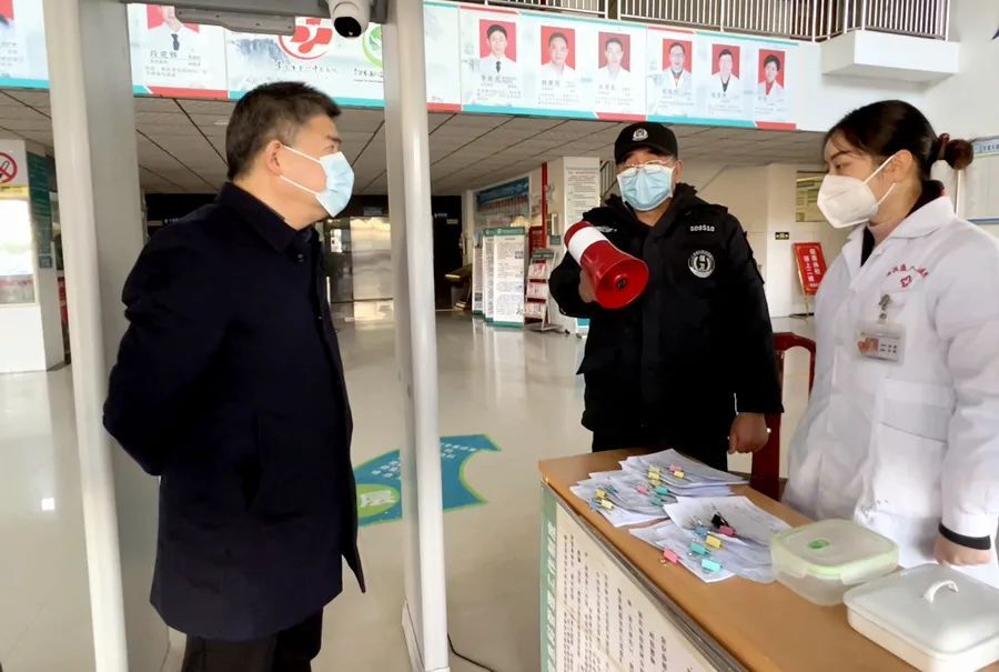 在人民医院,胡晓明详细了解疫情防控、核酸采样、值班值守等情况,并向节日坚守一线的医务工作者表示感谢,希望院方严抓院感防控,做好应急准备,为全区人民平安过节提供有力医疗保障。