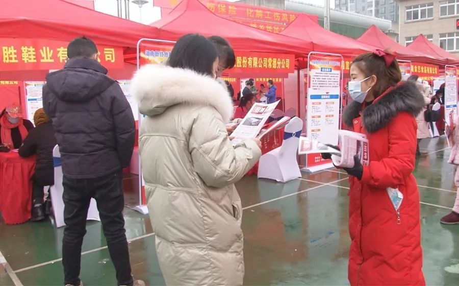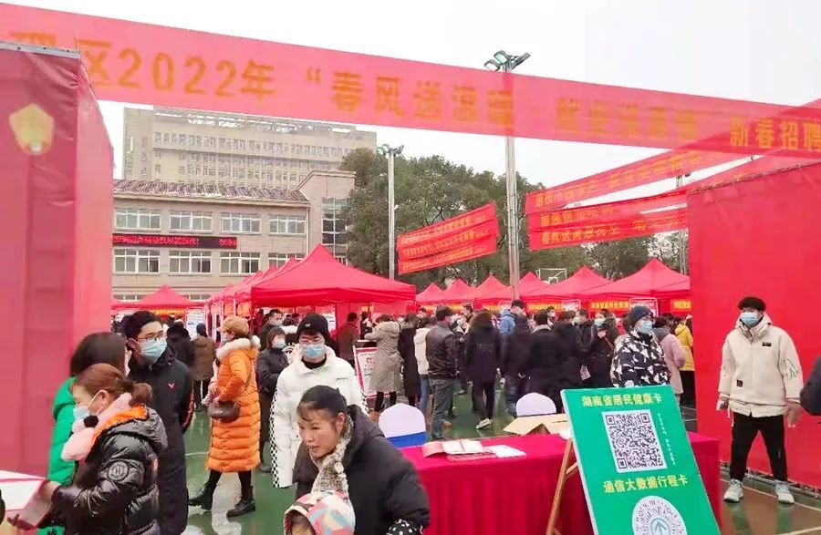 我现在所在的位置是洞庭明珠广场的招聘会现场,尽管今天寒风凛冽,却挡不住企业招工的迫切需求与求职者就业的热情,呈现出一派人来人往、问答热烈的忙碌景象,为新年喜气再添一丝春的生气。