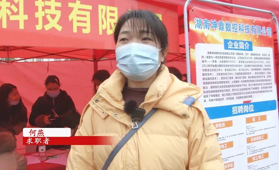 应聘者 何燕:因为小孩马上上初中了,想转回老家上学,我也想回家发展。趁着今天的招聘会,就过来看一下有没有适合自己的岗位,也方便照顾孩子,陪伴孩子成长。