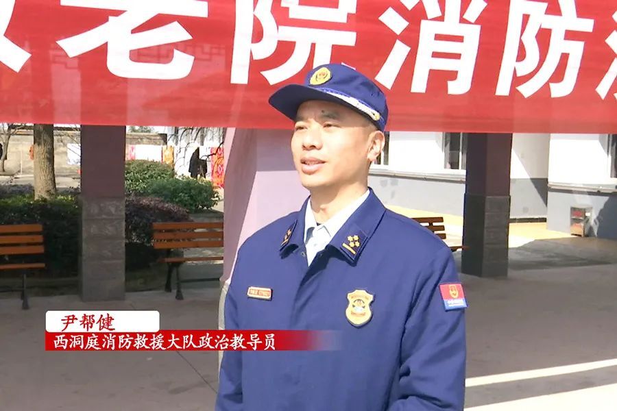 (区消防救援大队政治教导员 尹帮健:今天的活动主要是给老人家送上生活用品,米、油、水果等生活物资,第二是对敬老院的管理人员和社区的志愿者进行了一堂消防知识的讲座教授他们如何使用灭火器材,如何防范居民房火灾。通过此次活动,(第一)让我们全体(消防)救援人员(能够)积极投身传承践行雷锋精神(活动中来),第二是让所有的老人(能)老有所养、老有所乐、老有所安。)