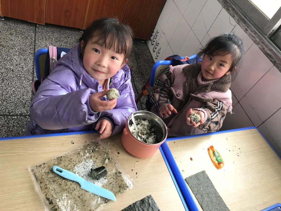休息时间,美食班窗外就挤满了小粉丝,羡慕的眼神,时不时咽下的口水,谁能抵挡住美食的诱惑呢?只见海苔、米饭、火腿肠这些普通的食材在小小美食家们的巧手中变换成一个个精致的饭团、寿司。指导老师介绍说,后续还将教孩子们制作水果沙拉、奶茶、饺子、粽子、汤圆、泡菜、薯条等,让农村的孩子们也体会舌尖的美味和创造的快乐,创造出“寻味祝丰”这一张特色名片。