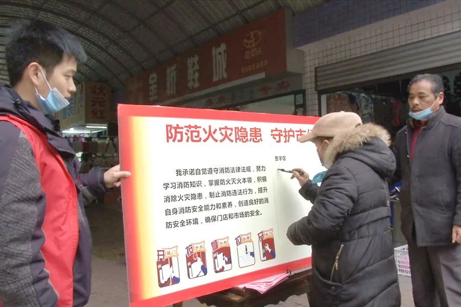 (龙泉街道人大联工委主任 熊然:龙泉街道组织开展金桥市场消防安全宣传教育活动,旨在落实区委经济工作会议全力以赴保安全的工作要求,加强金桥市场安全隐患防范和问题整改力度。通过一次签名承诺、一次灭火器使用、一次安全面罩佩戴的“三个一”活动,进一步提升商户的安全意识和应急处置能力。)