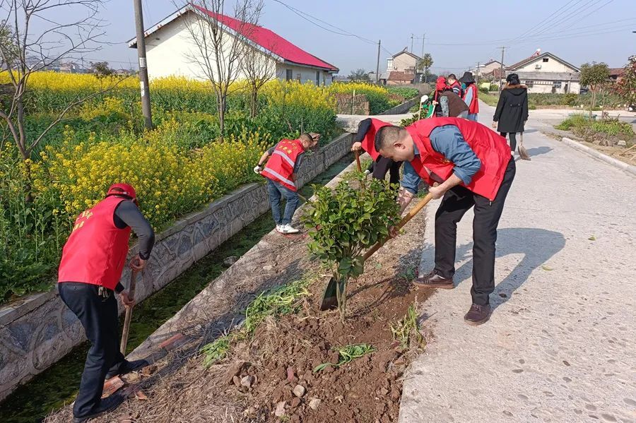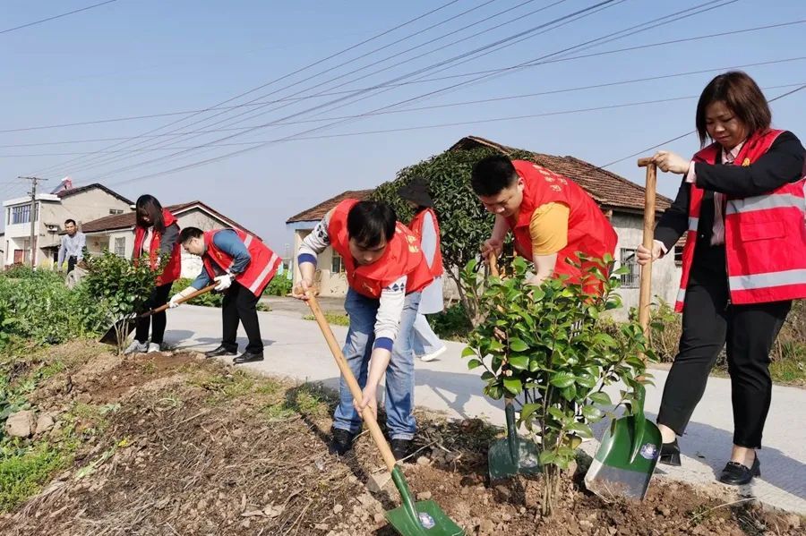 植树现场,大家热情高涨,分组合作,扛苗散苗、铲土挖坑、放苗扶正、栽树浇水,现场一片热火朝天的景象。经过一个多小时的劳动,清水塘幸福屋场沿线500米的200余棵茶花树苗被整齐栽下,为初春的金凤街道增添了更多活力。