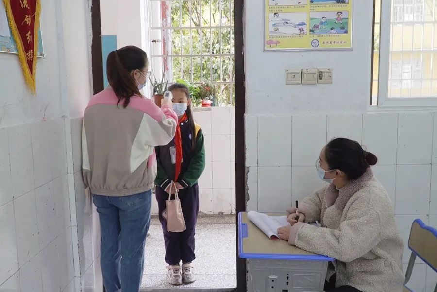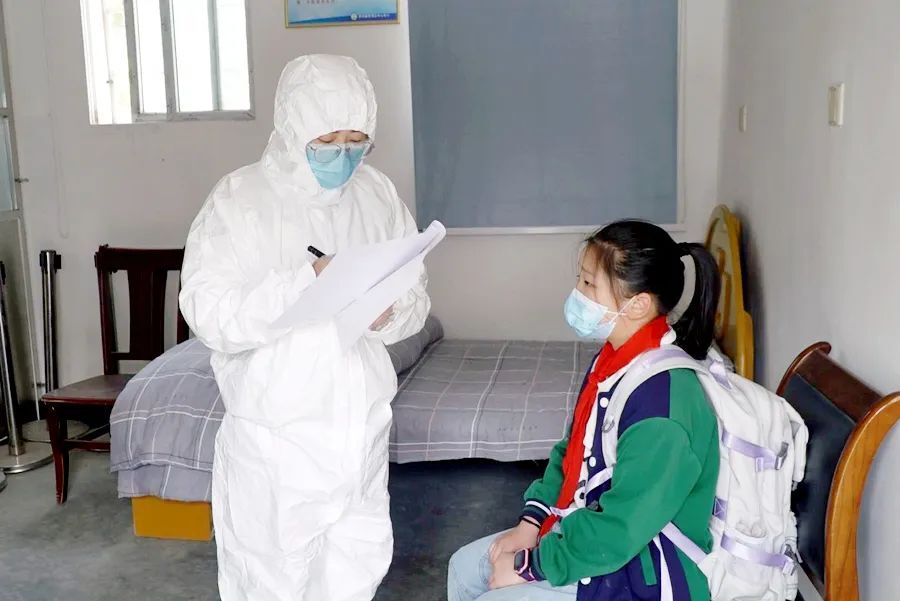 演练按照方案流程严格执行,分别模拟了入校晨检、教室上课、学校就餐、午检应急处置、学生放学、全校消毒六个场景。演练模拟在日常晨检与午检中,发现学生出现发热症状,校医务室工作人员立即将该学生带至留观室,联系体温异常的学生家长,了解该生的流行病学史及近期出行史、人员接触史。经再次测温确认体温异常后,校医室疫情防控负责人立即将情况反映给区疫情防控指挥部、区教育局、区职工医院等部门,并联系医院发热门诊,将该学生送往医院进行核酸检测。同时通知班主任将其他学生带出教室,由消毒人员对教室及途经区域进行全面消毒。