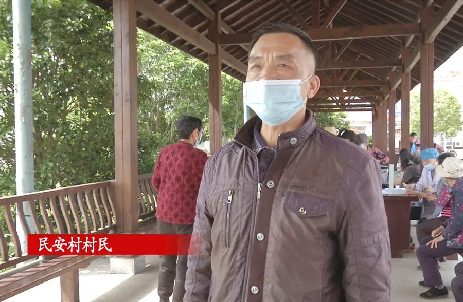 (民安村村民:我是送我妈妈过来打疫苗的,我妈妈的年纪76了,行动不是很方便,所以这次来打疫苗的医生极大的方便了我们这些群众,党的政策好,民众的心里也开心,谢谢了!)
