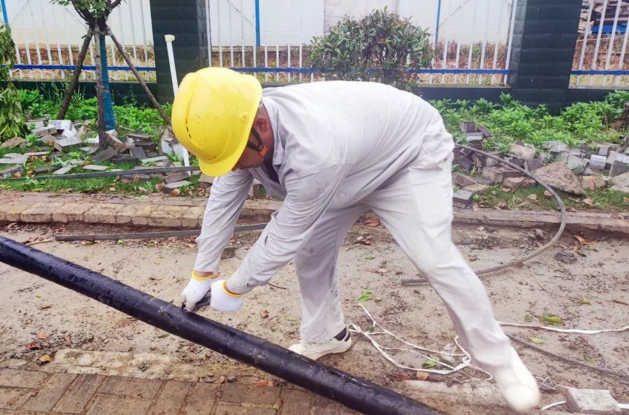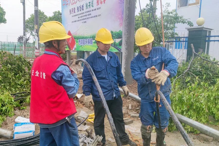 施工现场,工作人员正在冒雨抢抓工程进度,施工负责人告诉记者, 从4月22日起,涂望线正式开始送电,祝福I线将于本月26号开始送电。