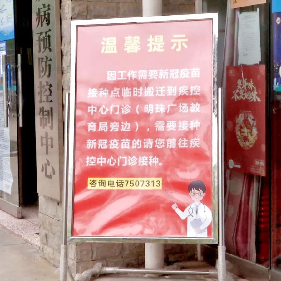 为进一步优化新冠疫苗接种服务,保证新冠疫苗接种工作有序、安全、稳妥开展。自5月10日起,我区新冠疫苗接种点搬迁至区疾控中心门诊(明珠广场教育局旁),需要接种新冠疫苗的群众请前往区疾控中心门诊接种。