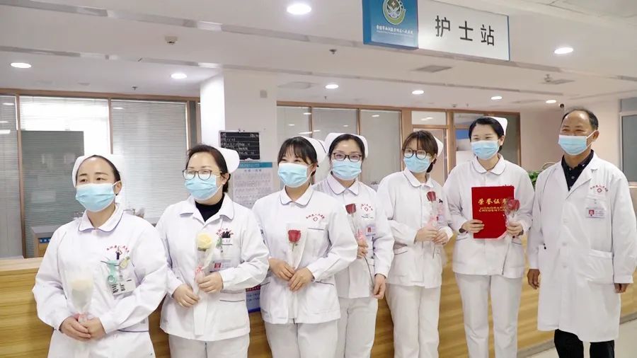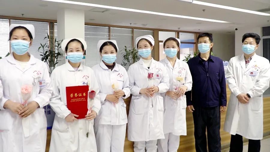 虽然口罩遮住了大家的笑颜,但遮不住脸上洋溢着的幸福神情。鲜花代表的不仅仅是一份情意和关爱,更多的是代表全院医护人员团结一心,舍小家顾大家的付出和情怀。