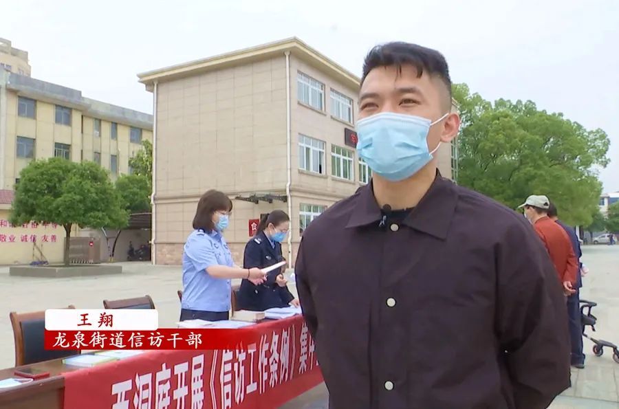 (龙泉街道信访干部 王翔:作为一名街道的信访干部,我觉得这次《信访工作条例》宣传月的活动对于我们基层干部来说是一个非常有意义的活动,给我们基层的信访干部普及了信访的条例和知识,提升了自己的工作水平和办事能力,更重要的是给老百姓普及了《信访工作条例》,能够让老百姓通过正常渠道合理合法合规的反映自己的诉求。 )