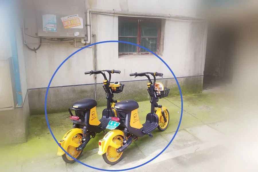 迎丰大道农业银行门前,非机动车停在人行道,不规范停放