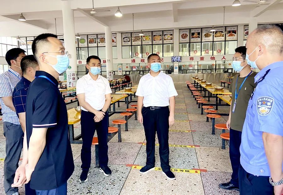 刘爱军一行实地查看了西洞庭考区考生入场通道、考场设置、食堂食品卫生和考点周边环境等情况,现场听取相关负责人关于考点各项准备工作情况的汇报,详细了解考点监考人员和疫情防控人员配置、安全保密措施落实等方面情况。