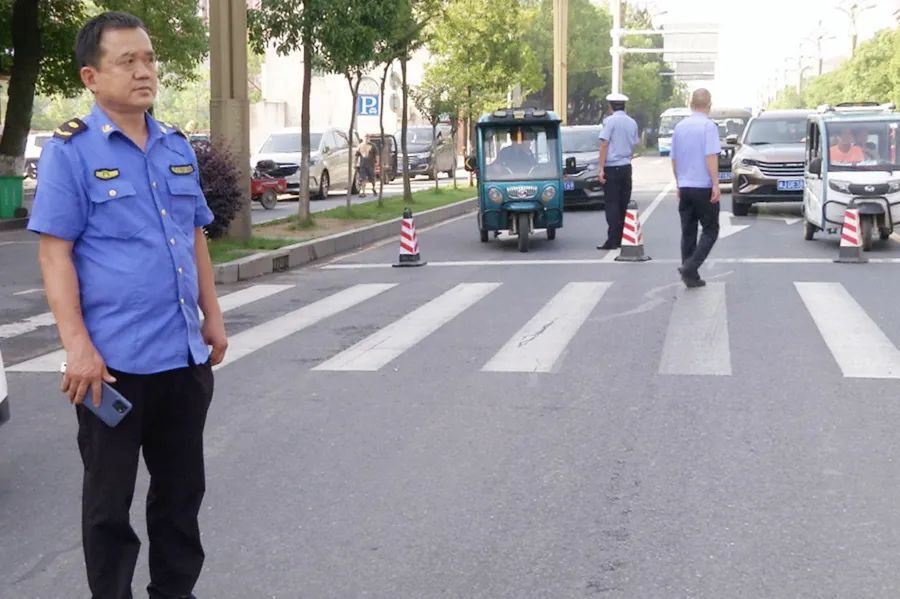 (区综合行政执法局执法队长 周进:我们在考生进入考场前就提前到达就是为了确保高考考生能有一个良好的考试环境,我们主要负责以下几个方面,第一,流动摊贩的管理;第二,噪音的管理;第三,车辆乱停乱靠的管理。)