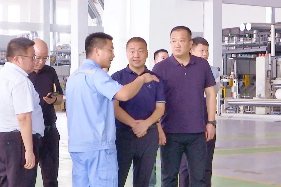 在天鼎丰企业生产车间,刘爱军实地查看了企业生产流水线,向企业负责人详细了解企业落地投产后的生产运营、产品销售、经济效益及企业未来规划等情况。