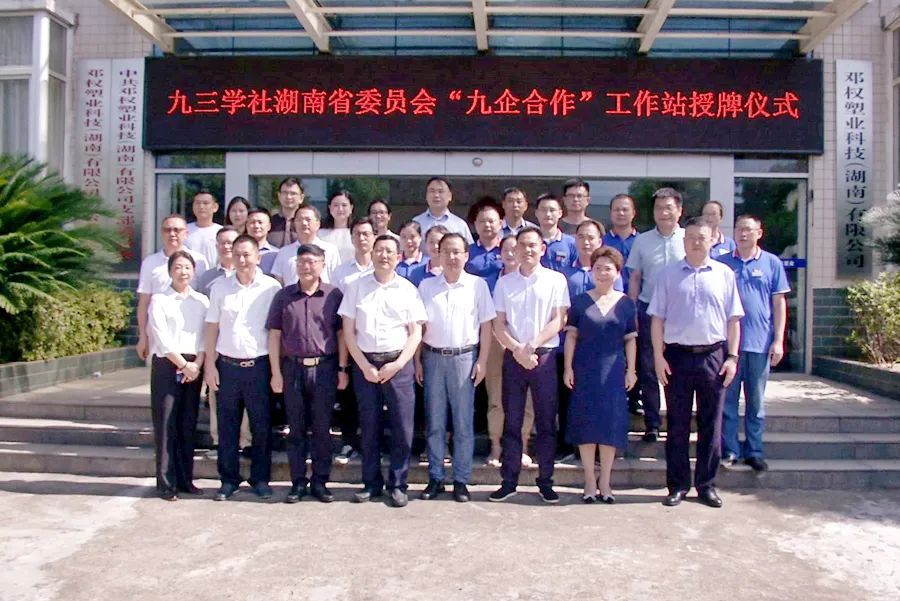 在社员企业邓权塑业科技有限公司,陈赤平与企业负责人详细交谈,仔细询问了公司目前生产经营及建设规划情况,并深入企业厂房车间、企业产品展示厅,实地查看了厂区环境,生产工艺流程等。陈赤平为 “九企合作”工作站邓权塑业科技有限公司授牌。他强调,建立“九企合作”工作站,是九三学社湖南省委会在社会服务方面开展创新实践工作、打造基层工作平台,服务助推地方经济、企业发展的重要举措,希望以后双方能进一步深化合作,汇聚人才,凝聚智慧,为地区经济社会发展和企业发展做出更大贡献。