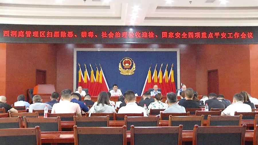 7月28日,西洞庭管理区扫黑除恶、禁毒、社会治理验收迎检、国家安全四项重点平安工作会在公安分局会议室召开。区党委委员、政法委书记任立,公安分局党组书记、局长蔡军出席会议。