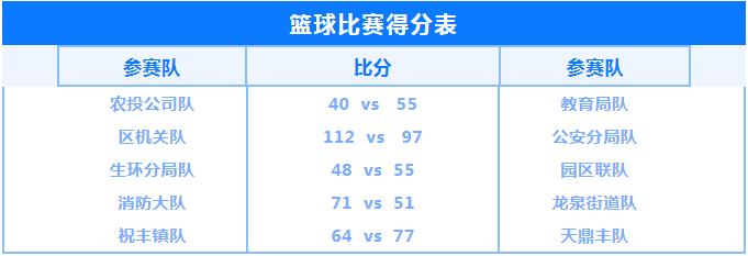 参加比赛的分别是A组的农投公司队、教育局队、区机关队、公安分局队、生环分局队和园区联队。B组的金凤街道队、消防大队、龙泉街道队、祝丰镇队和天鼎丰队。