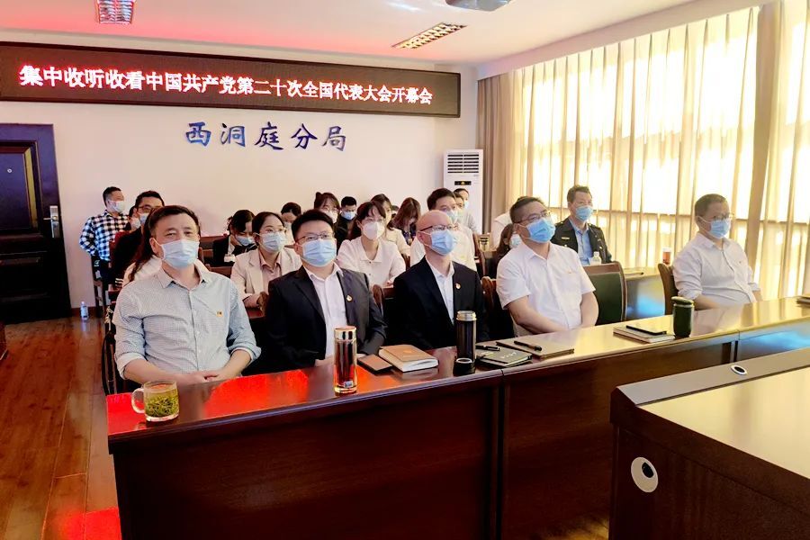 10月16日上午,举国关注、举世瞩目的中国共产党第二十次全国代表大会在北京隆重开幕,西洞庭处处洋溢着欢乐喜庆的氛围,从城区到乡村,从机关到社区,从企业到学校,从党员到群众……大家怀着激动和喜悦的心情,通过电视、网络等多种形式,认真收听收看党的二十大开幕会盛况。
