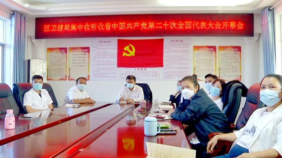 在区教育局、卫健局、自然资源局、应急管理局(水利局)、综合行政执法局、离退休中心等地,各单位组织人员集中收听收看了开幕会现场直播,认真聆听学习党的二十大报告。报告中的新论断、新思想、新目标,让全区各界干部群众倍感振奋。