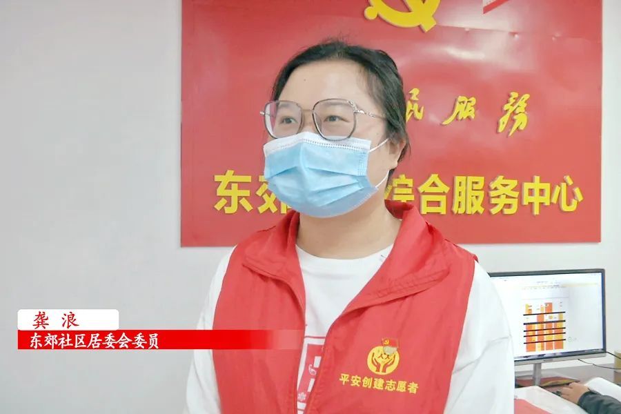 东郊社区居委会委员龚浪:我作为一名党员,也作为一名社区干部,在疫情防控形势如此严峻的情况下,我觉得我应该冲在疫情防控的最前线,所以我主动要求提前结束产假,为我区疫情防控贡献出自己的一份力量,其实我每天的工作就是对重点地区(返西)人员电话、上门摸排及管控,每天开展疫情防控知识宣传等,身体还是能扛得住,我相信在我们的共同努力下,我们一定能早日战胜疫情。