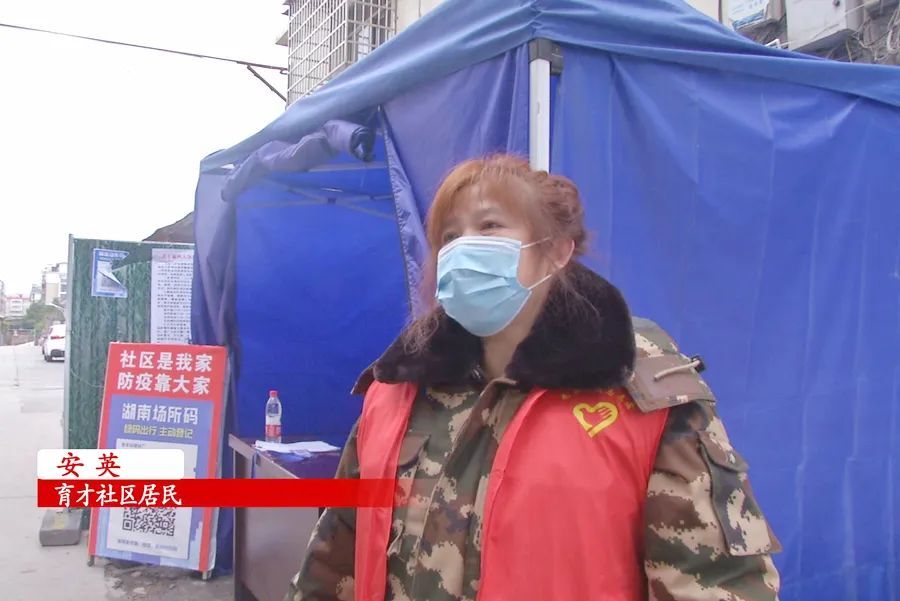 (育才社区居民安英:我们西洞庭的这些基层干部辛苦抓得到位(才换来西洞庭的平安),我跟我老公就是想助他们一臂之力,领导也是十分关心我们的,怕我们冷,给我们送炭、送水。)