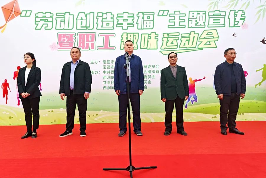 为丰富广大干部职工文体生活,进一步激发干群干事创业热情和活力。3月7日,由常德市总工会、西洞庭管理区委员会主办,区组宣部、工青妇承办的 “劳动创造幸福”暨职工趣味运动会在明珠广场举行。区党委委员、武装部部长辛勤出席活动并宣布活动开幕,区二级调研员刘建强为活动致辞。全区各行政企事业单位干部职工约300余人一起共赴一场春天的运动会。