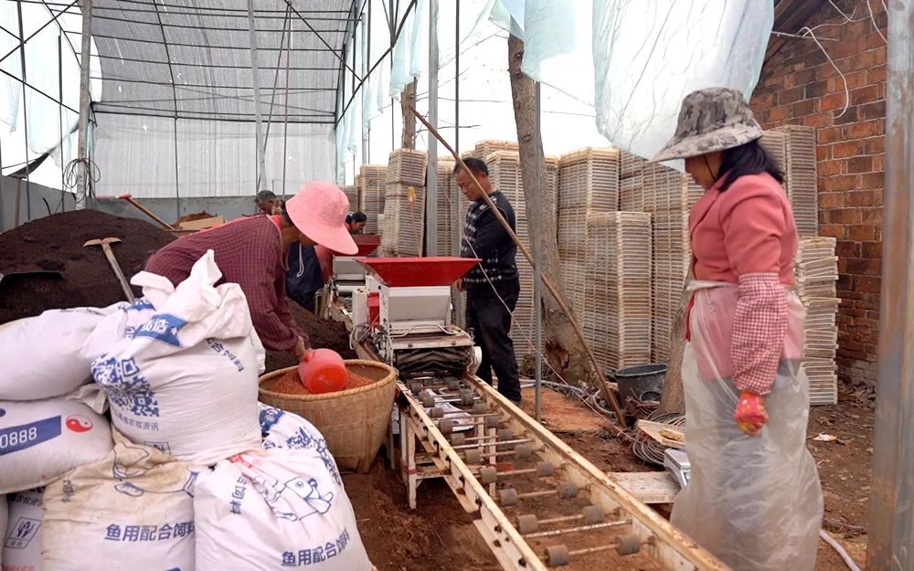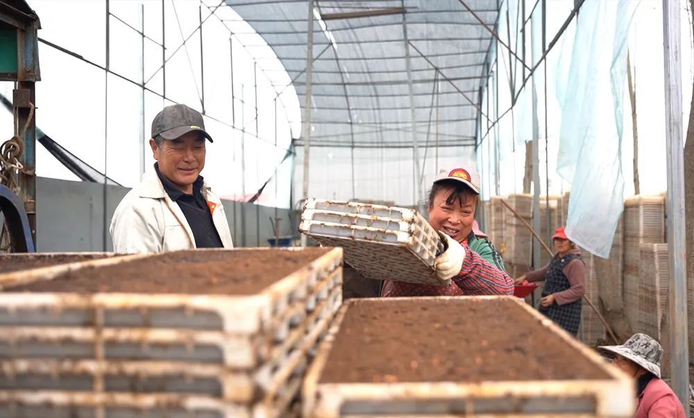 据梁小红介绍,秧盘码垛后会转运到塑料大棚,待工人们摆放整齐后进行覆膜,通过智能控温控湿技术管理,三四天就能出苗,四月中下旬开始机插,既能有效保障春耕不误农时,秧苗品质也得到了有效保障。