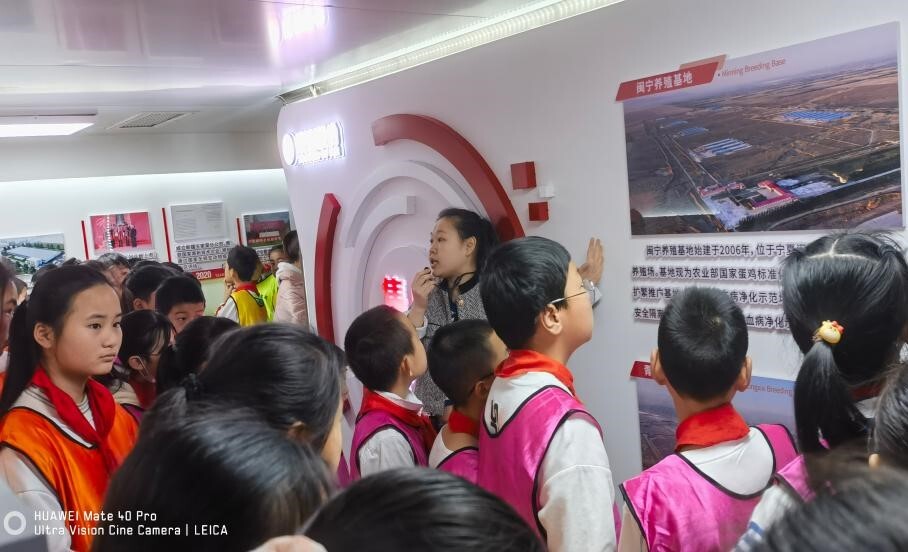在晓明股份南方种业中心,学生们看到了从一枚种蛋到一只小鸡的孵化过程。讲解员介绍说,这里通过现代化的孵化技术,实现了鸡蛋的批量孵化和管理。孵化箱内部有温度、湿度、氧气等传感器和调节器,能够根据不同阶段的鸡蛋需求,自动调节最适宜的环境。保证每个鸡蛋都能顺利孵出健康的小鸡。