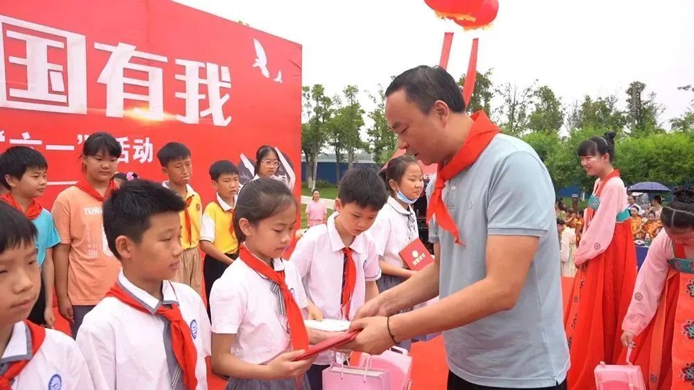 随后,郭蕾和区教育局主要负责人向来自中心完小、祝丰完小、金凤完小、望洲完小、龙泉完小的30名西洞庭管理区新时代好少年赠送节日礼物。