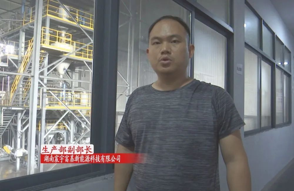 【同期声】湖南宸宇富基新能源科技有限公司 工序主管:杨主管平时对我们这些员工都非常关心,每天早会强调的最多的一个词就是安全,安全生产是第一位,在工作中我们遇到任何情况都可以及时与他沟通交流。在工作上他也非常认真负责,对待每个生产环节都非常细致。