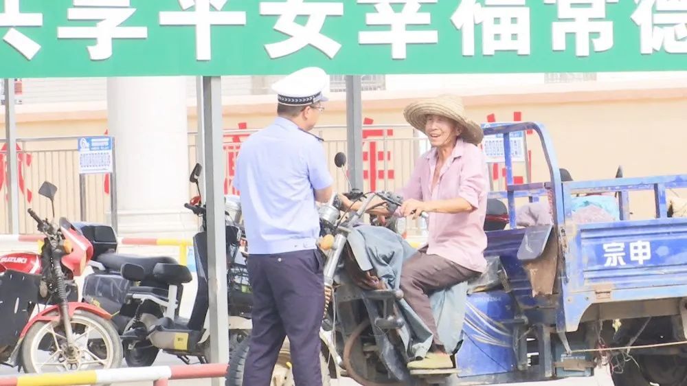 “请把你的遮阳伞收了,头盔带起,出示你的摩托车驾驶证……”“骑电动车可不能戴遮阳帽,要戴头盔了,头盔才能保护生命安全”,在迎丰大道路口,交警正在对车辆行驶资质、无证驾驶、不戴安全头盔等交通违法行为进行检查,全力将交通安全隐患消除在萌芽状态。炎炎烈日下,交警执法人员一站就是几个小时,警服湿了干,干了又湿,皮肤也晒黑了,嗓子也有点沙哑。