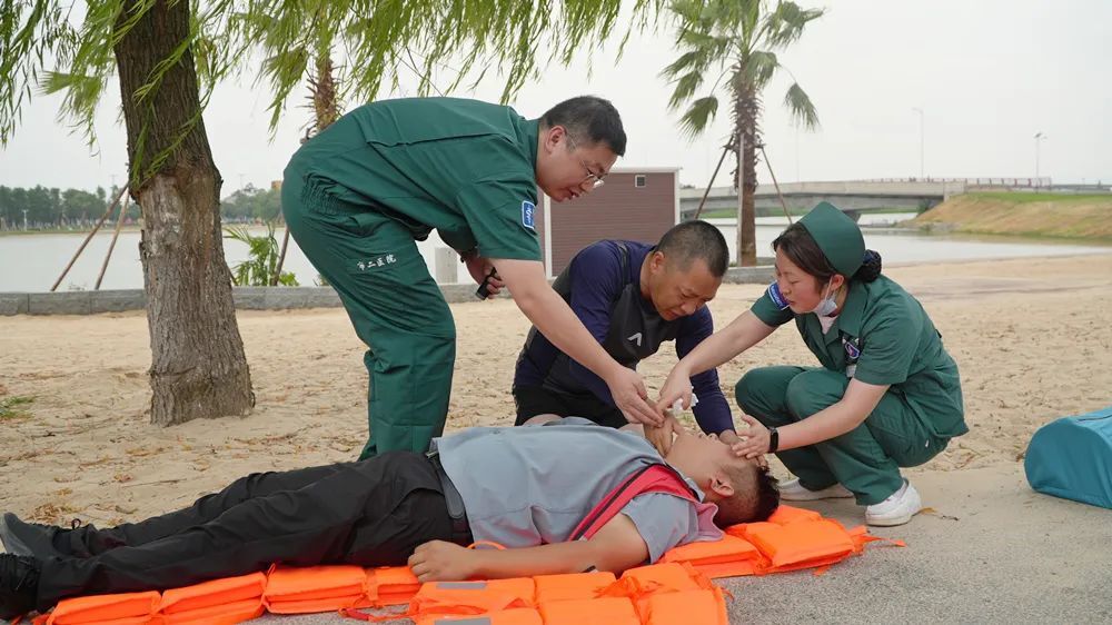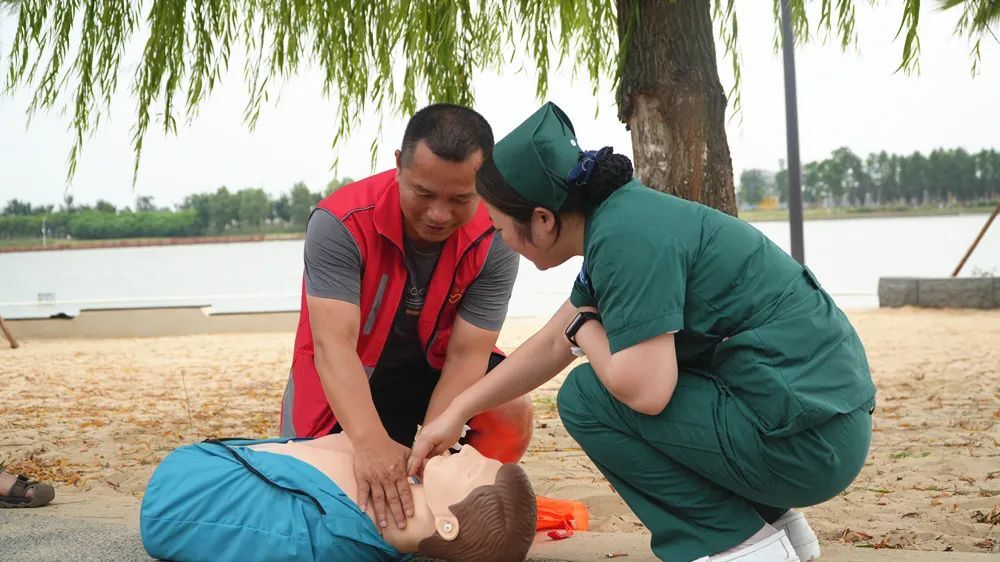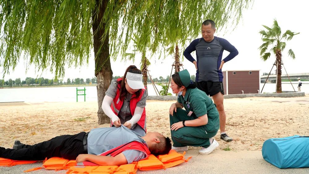 金凤街道办副主任 鲁东承:夏季以来,沙滩公园人气爆满,我们金凤街道通过“三防”措施进行防溺水工作,在巡查中,如果发现儿童溺水我们的专职安全员会兵分两路进行救援。一是立即进水救人;二是马上去拿救生设备,确保儿童安全。